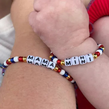 A pair of Mama & Me elastic bracelets celebrating the 4th of July!